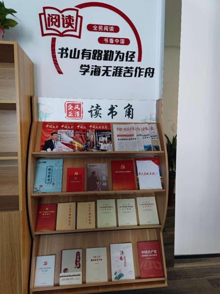活動(dòng)開展以來,產(chǎn)發(fā)企管集團(tuán)各權(quán)屬企業(yè)高度重視,積極謀劃,認(rèn)真部署,在黨員活動(dòng)室、會(huì)議室及公共辦公區(qū)域等選擇適當(dāng)位置,因地制宜創(chuàng)建各具特色的廉潔讀書角。讀書角內(nèi)放置黨史類、黨紀(jì)法規(guī)類、反腐倡廉類及紀(jì)檢監(jiān)察類期刊等讀物,為干部職工提供了一個(gè)了解黨風(fēng)廉政建設(shè)、學(xué)習(xí)時(shí)政及黨紀(jì)法規(guī)、掌握中央八項(xiàng)規(guī)定精神、體驗(yàn)廉潔文化、感悟廉潔力量的重要窗口。讀書角周邊張貼“書香致遠(yuǎn)、清廉潤(rùn)心”“書香育廉、閱以修身”等各類廉潔文化宣傳標(biāo)語,營(yíng)造了濃厚的廉潔氛圍。