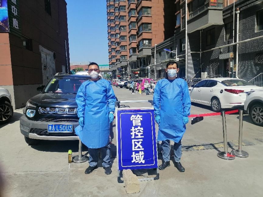 元首集團(tuán)所駐派的金欣佳苑社區(qū)情況復(fù)雜,有兩個(gè)單元被封控,封控單元需要24小時(shí)值守。集團(tuán)單守忠、呂法寶、劉會全和張斌四人分成兩組輪班值守。4月28日,單守忠、劉會全值班12小時(shí)后,卻得知另外兩個(gè)隊(duì)友均因社區(qū)管控?zé)o法到崗。封控單元無人值守怎么能行?單守忠和劉會全當(dāng)機(jī)立斷,繼續(xù)值守,拖著疲憊的身體咬牙硬撐。守得云開見月明,在兩人連續(xù)值守36小時(shí)后,終于迎來了兩個(gè)單元成功解封的好消息。兩位下沉人員在危急時(shí)刻顧大局、講奉獻(xiàn),未退縮半步,讓“白衣”和“黨旗”在防疫一線交相輝映。